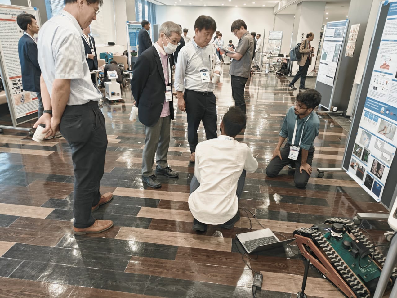 The landmine detection robot's journey was equally remarkable. This time, the competition was held in Japan, and the theme was straightforward. The team started strong, building a track-based robot with a wooden structure. Safwan and Josfin focused on the mechanical design, while Abhinav developed a TinyML model for landmine detection. Vishnu handled the software, Jerom created the business outline, and Zain contributed across all areas, making it a true team effort. Their hard work paid off when Zain and Vishnu were selected for the final round. Despite feeling exhausted and oversleeping before the competition, Bos Sir motivated them to attend the PPT presentation, which went flawlessly. The live demonstration also went smoothly, though they had little hope of winning due to tough competition and advanced rival robots. After two days of conferences, the results were announced. To their shock, they won first prize! Zain was overjoyed, and the entire IEEE Kerala Section and their college celebrated their achievement. The team's disbelief and excitement were evident, marking a proud and unforgettable moment.